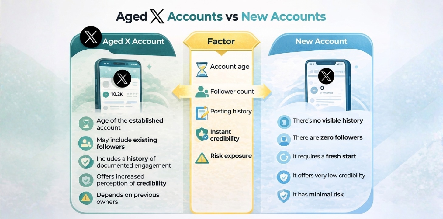 If you want quick visibility, aged accounts can help. But if you need full transparency, new accounts are safer.